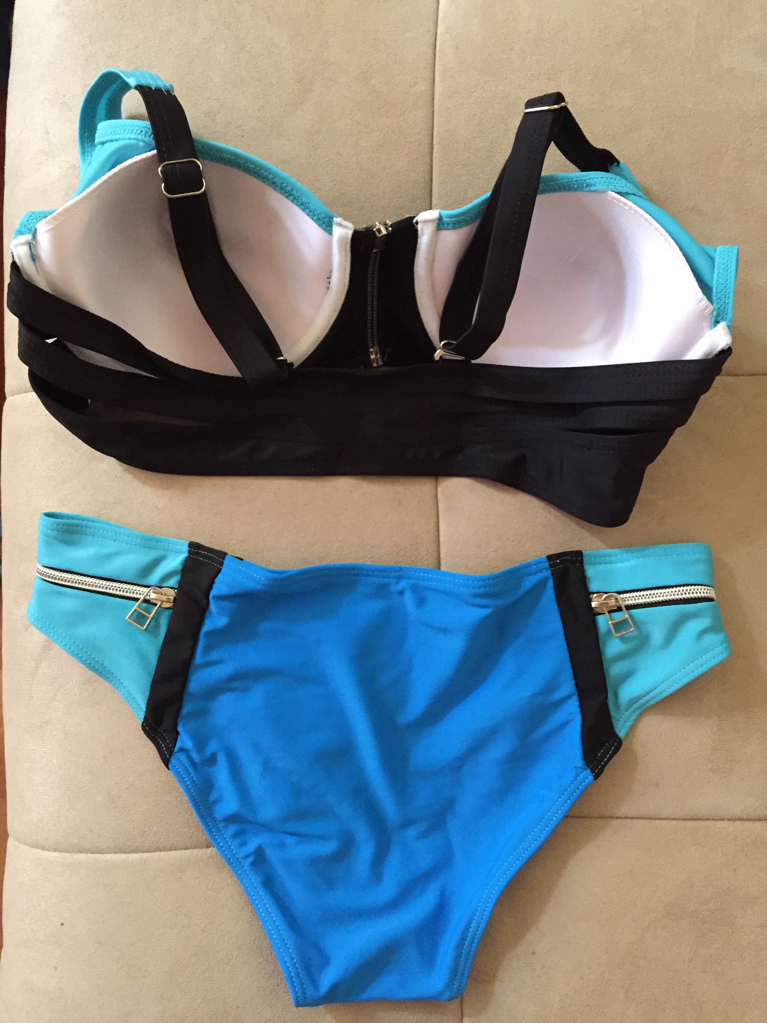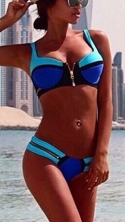 Bandage Zipper Push Up top with adjustable straps and zipper sides bottom. Could leave zipped or not as you wish. Not scrunch bottom (as shown on photos)